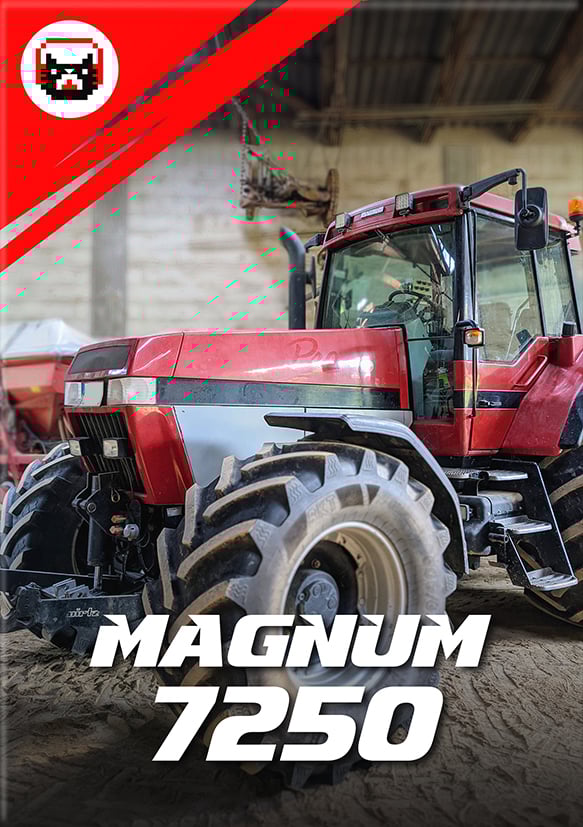 Recordings of a Magnum 7250 tractor from Case IH, known for its robust performance and efficiency. This titan in agriculture boasts a turbocharged 8.7-liter engine that roars with 250 horsepower.